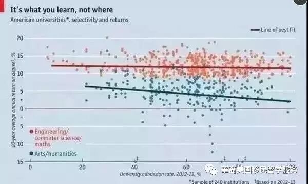 《The Economist》做过一个关于美国大学选择与回报的调查研究。大数据表明:从未来的收入水平看,“学什么专业”,比“在哪里学”更重要。